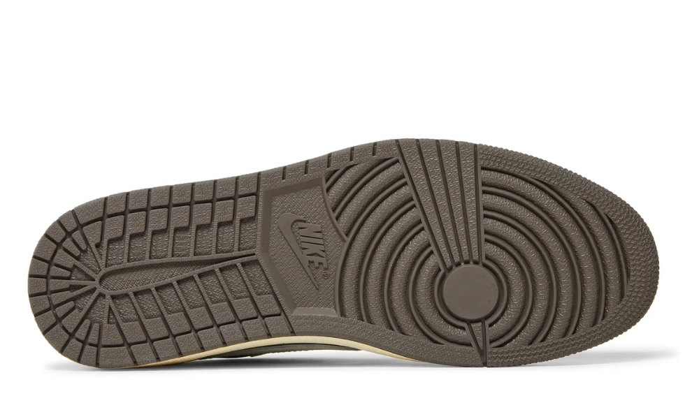 Giving a remix on the original 'Mocha' AJ1 from 2019 is the Travis Scott x Air Jordan 1 Low from 2019. The upper features a brown suede base with ivory leather overlays and Scott's signature reverse Swoosh on the lateral side with oversized dimensions and a neutral cream finish. Contrasting scarlet accents distinguish a pair of woven Nike Air tongue tags and mismatched heel tabs with a Cactus Jack and retro Wings logos embroidered. It's built on an off-white rubber midsole with encapsulated Nike Air cushioning in the heel and a brown rubber outsole underfoot.