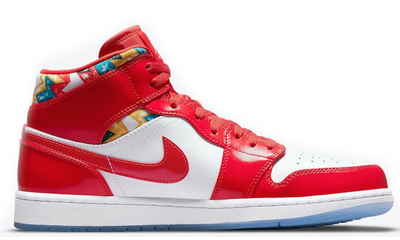 Air Jordan 1 Mid Red Patent White Blue Shoes