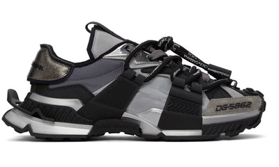 Dolce & Gabbana Black & Silver Mixed-Materials Space Sneakers