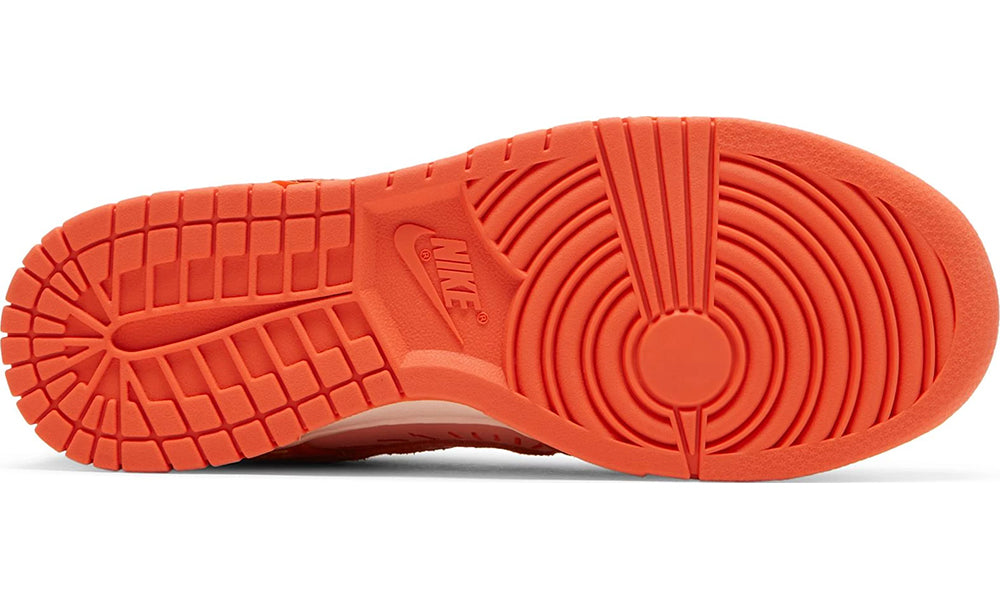 The Nike women’s Dunk Low ‘Winter Solstice’ features a unique design that nods to the low-hanging sun that accompanies the winter months. Radiating lines are embroidered throughout the upper, featuring a pink leather base with suede overlays in burnt orange and crimson. The latter wraps around the heel with a yellow half-sun graphic in contrasting yellow embroidery. ’12.21.12’ is displayed on the tongue tag of the right shoe and the sockliner of the left, nodding to the official start of the winter solstice in the year 2021. The low-top rests on a pink-tinged midsole, supported underfoot by a bright red rubber outsole.