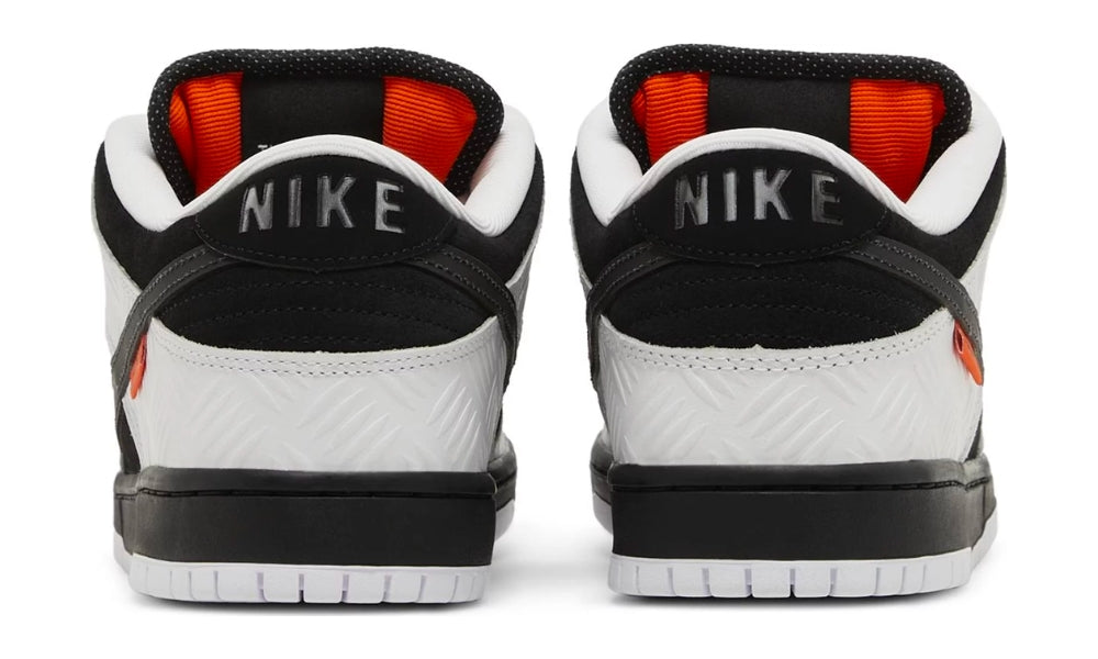 The TIGHTBOOTH x Nike Dunk Low SB presents the Japanese brand’s take on the classic silhouette. The low-top carries a black suede upper with textured white leather overlays at the forefoot and heel. On the lateral side, an orange TIGHTBOOTH tag is appended to the reflective black leather Swoosh. Dual logos adorn the stuffed tongue, while orange insoles display mismatched TIGHTBOOTH and Nike SB branding. The sneaker is mounted on a black rubber midsole, contrasted underfoot by a grippy white rubber outsole.