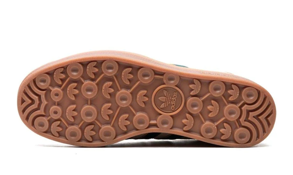 adidas' Gazelle Bold sneakers are aptly named for their statement flatform sole which is stacked with three overlapping rubber panels. The suede uppers of this "Cream Collegiate/Green" pair remain steadfast to the original design with iconic 3-Stripes and a gold foiled style name at the sidewalls.