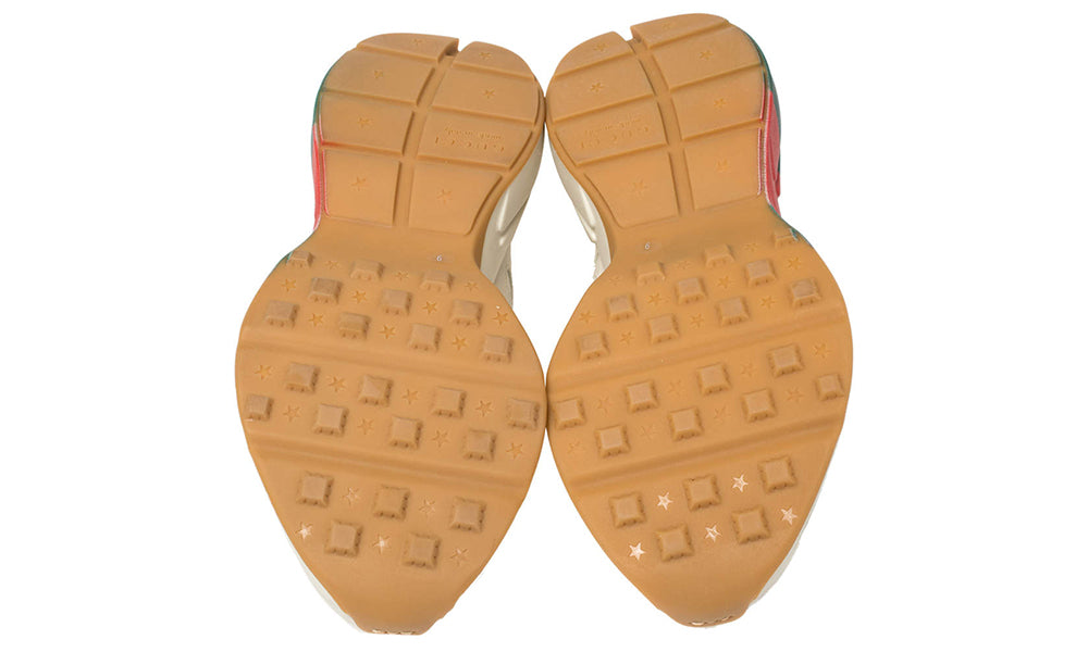 The time to feel trendy is now as Gucci brings you these superhit sneakers in cream. They are crafted from leather, detailed with lace-ups, and the signature Web stripe on the sides and are set on highly comfortable soles. You are sure to receive nods of approval when you step out in them.