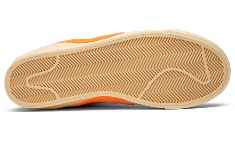 Supplied by a premier sneaker marketplace dealing with unworn, already sold out, in demand rarities. Each product is rigorously inspected by experienced experts guaranteeing authenticity. The Off-White x Nike Blazer "All Hallows Eve" is one of two spooky colorways of the Virgil Abloh-designed sneaker. The reimagined construction of the classic Blazer that Abloh first debuted in “The Ten” collection in 2017 was back for Halloween 2018. For the "All Hallows Eve" edition, the Blazer was given a ghostly cream hue across the leather and translucent upper with the oversized Swooshes in orange. Green detailing, Abloh’s signature bold branding text in black, and light blue zip ties complete the Halloween-themed shoe. The Off-White x Nike Blazer "All Hallows Eve" released alongside the “Grim Reaper” colorway. Each colorway was released in very limited quantities in October 2018 and are now among the most sought-after models in the ongoing collaboration between Abloh and Nike.