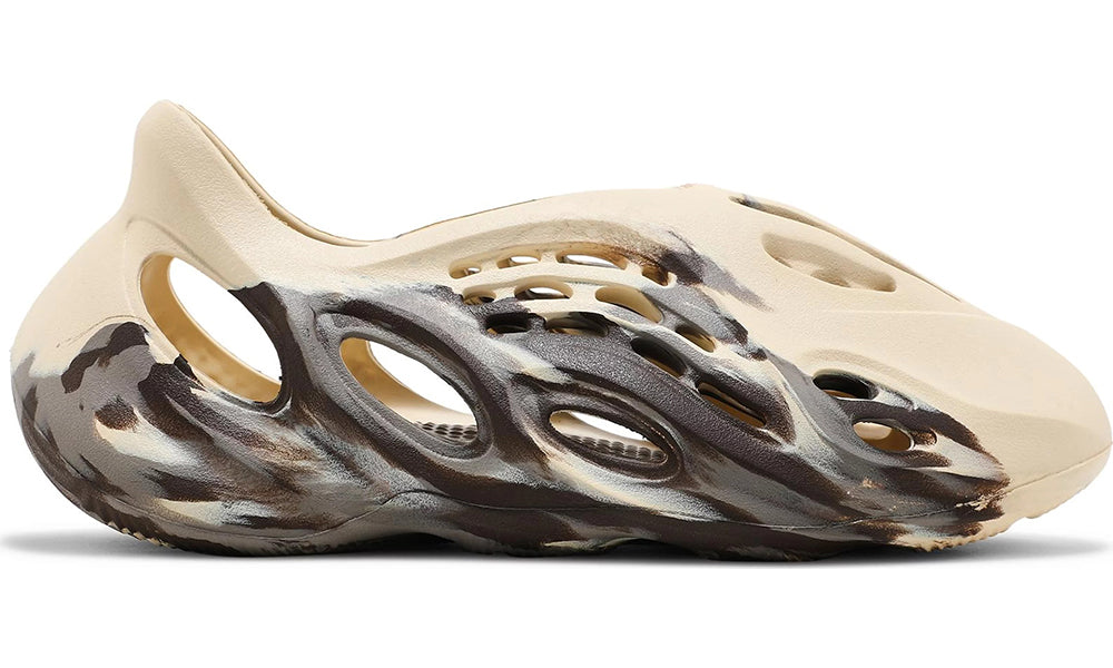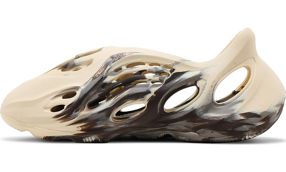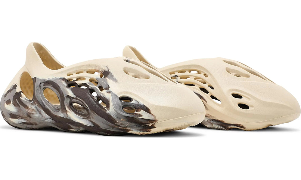 The adidas Yeezy Foam Runner ‘MX Cream Clay’ enlivens Kanye West’s amphibious slip-on with a swirling blend of brown and grey. The neutral hues appear to have been painted on the surface of the cream-colored one-piece upper, crafted from a combination of lightweight EVA and hydroponically produced algae. Ventilation ports of varying sizes ensure breathable comfort, while the sculpted design keeps the foot locked in place.