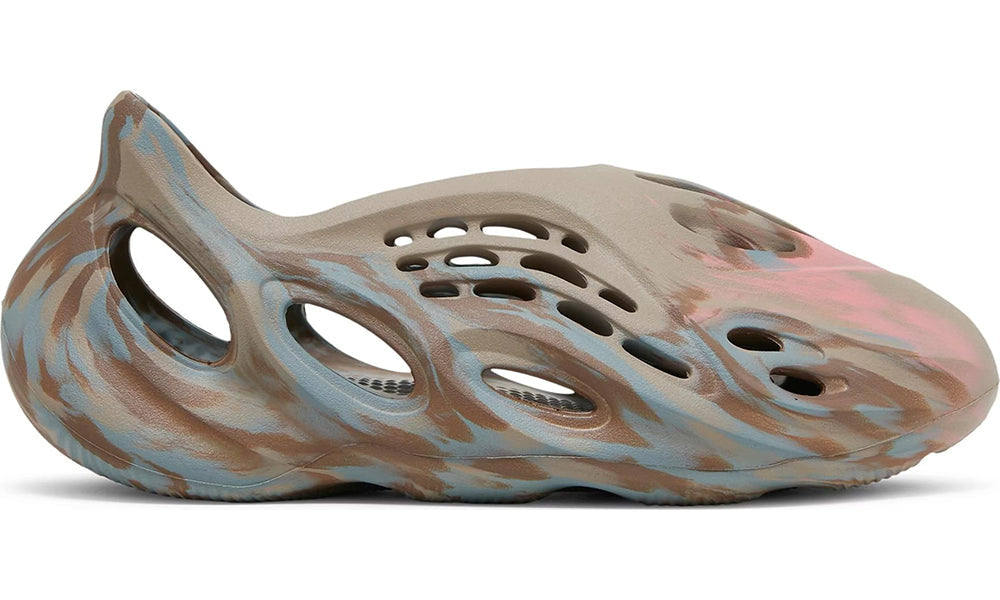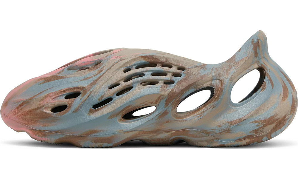 The adidas Yeezy Foam Runner ‘MX Sand Grey’ updates the flexible clog-like silhouette with a neutral blend of colors. The one-piece foam upper is finished in a refined tan hue with swirling hits of grey and dark beige throughout the side panels, heel, and outsole, featuring a wavy traction pattern for enhanced grip. A series of ventilation ports in varying sizes and shapes offer breathable comfort, while the sculpted heel is designed to cradle the back of the foot.